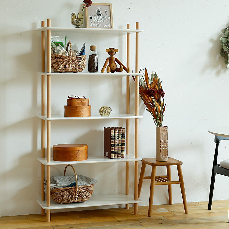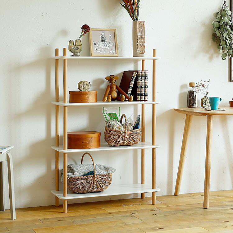 オープンラック barque(バルク) 幅80cm 4段タイプ オープンラック ラック シェルフ チェスト キャビネット 木製 天然木 収納 リビング 寝室 ベッドルーム ワンルーム 北欧 ホワイト 白 幅80cm 4段 80cm 80 幅80