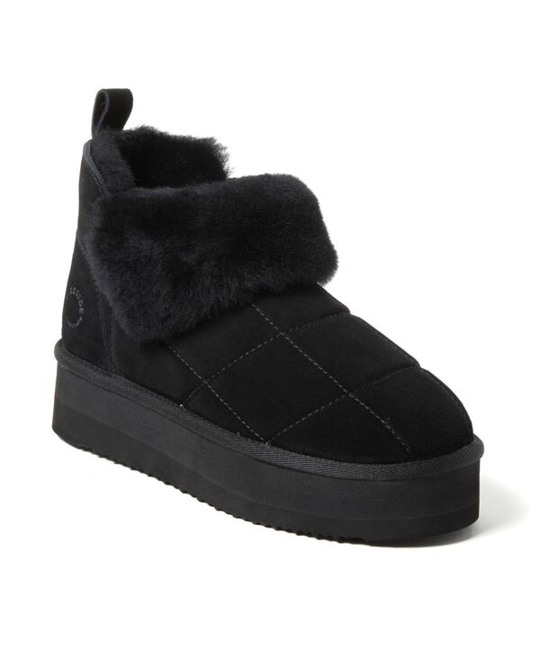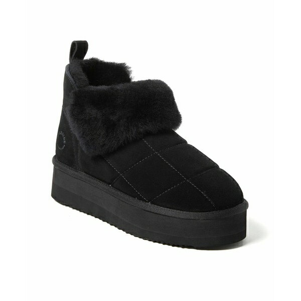 ディアフォームズ レディース シューズ ブーツ・レインブーツ プラットフォーム キルティング ブーツ Dearfoams Fireside by Women's Bayswater Genuine Shearling Quilted Platform Bootie Black ブラック