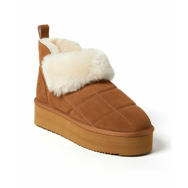ディアフォームズ レディース シューズ サンダル プラットフォーム ブーツ Dearfoams Bayswater Puff Women's Platform Shearling Bootie Slippers Chestnut