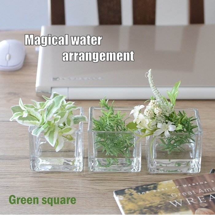 【2個セット】マジカルウォーターフェイクグリーン ガラスキューブ 光触媒 マジカルウォーターアレンジ インテリアグリーン 母の日 父の日 ギフト メッセージカード付 ギフトラッピング 贈り物 造花 アーティフィシャルフラワー フェイクグリーン 光触媒 green square
