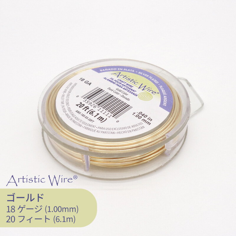 ビーズスミス アーティスティックワイヤー ゴールド色 18ゲージ 全長約6.1m 1巻 クラフトワイヤー ノンターニッシュ ゴールド ライトゴールド 折れにくい 劣化しにくい 耐久性 手芸 ジュエリー 製作 クラフト 材料
