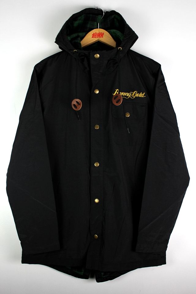 「BENNY GOLD(ベニーゴールド)」から、ナイロンフーディージャケットが入荷です。 シンプルなブラックナイロンシェルに裏地にはチェック柄のフランネル生地を採用、その他にもブランドロゴ入りのオリジナルスナップボタンやレザープル、三角にカットされたシルエットが印象的なフィッシュテイルなど細部まで作りこまれた一着。 袖はベルクロ調整でき、フードにはドローコードが内蔵されています。 素材 : ナイロン100% (裏地/ポリエステル100%) 原産国 : CHINA 商品詳細 サイズ モデルの身長は175CMのがっちり体型でLサイズを着用しています。 サイズの詳細は下記のとおりです。 M : 前着丈75CM、後着丈83CM、身幅58CM、肩幅46CM、袖丈63CM L : 前着丈77CM、後着丈85CM身幅60CM、肩幅48CM、袖丈65CM 注意点 ※商品によって多少風合いが異なりますので、写真と全く同じカラーの物が届くとは限りません。ご了承の上、ご注文ください。 ※実寸サイズは平置きで採寸しておりますが、若干の誤差が出る場合がございます。 ※当店は実店舗と在庫を共有している為、どうしても売り違いによる完売が生じてしまう場合がございます。 ※オーダー後に完売連絡を差し上げる場合もございますので、お客様のご理解とご協力お願い致します。
