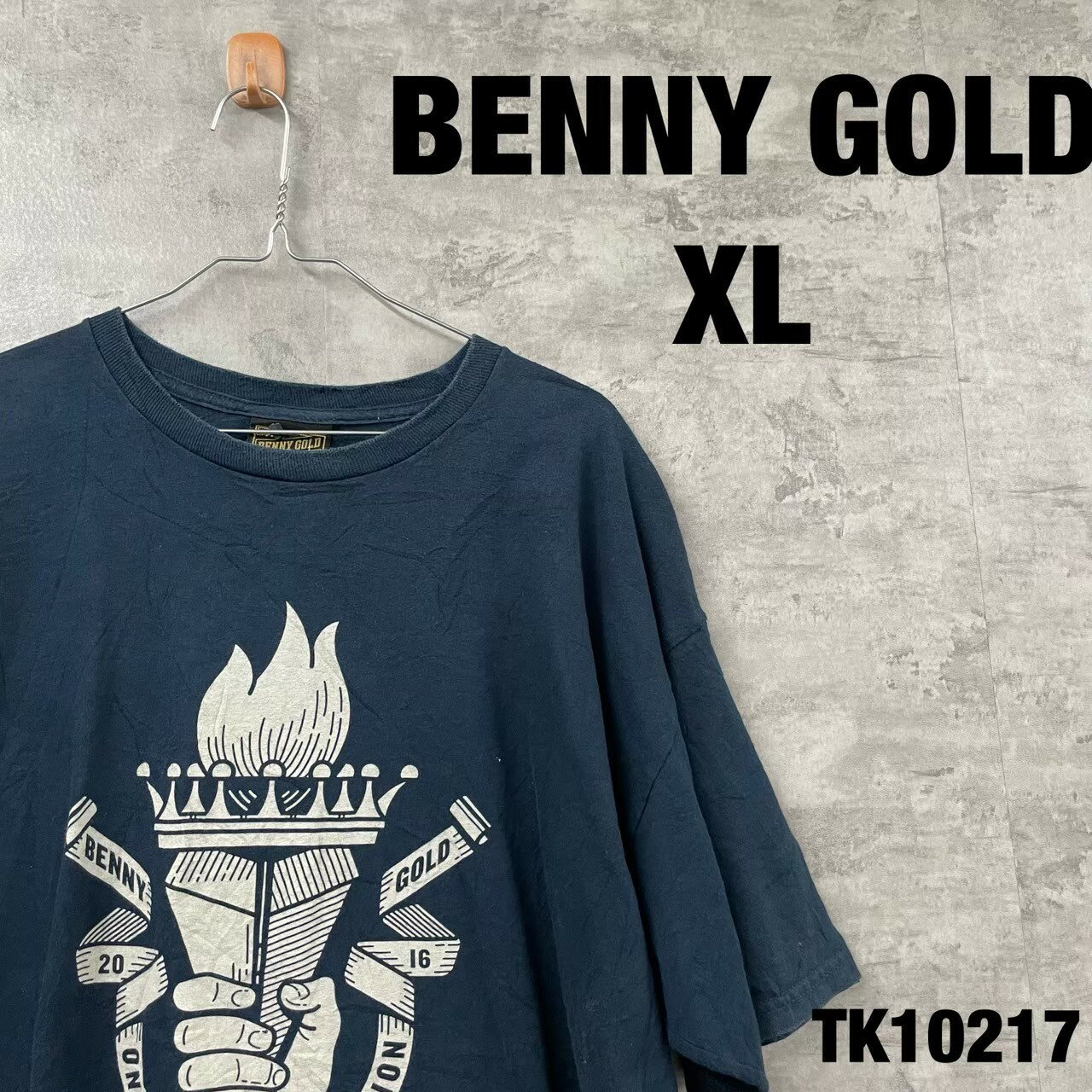 【中古】BENNY GOLD ベニーゴールド ネイビー Tシャツ 半袖 クルーネック メンズ XL ビッグデザイン 古着 TK10217