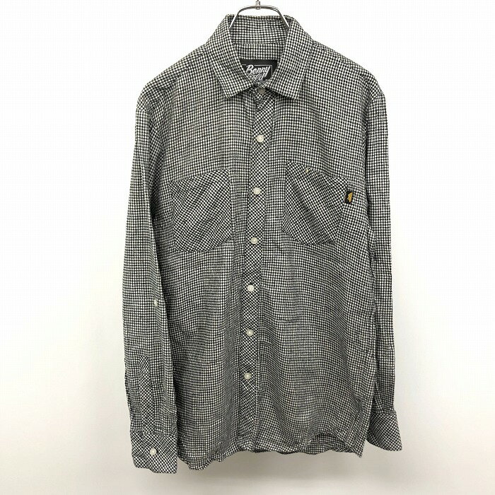 【もうすぐ終了 全品PT20倍!!|〜11/27(木)01時59分まで\Black Friday★ブラックフライデー/最大2千円OFFクーポンも】【中古】BENNY GOLD ベニーゴールド S メンズ ネルシャツ ソフトネル 千鳥格子 長袖 袖ロールアップ USA製 綿100% コットン ブラック×ホワイト 黒