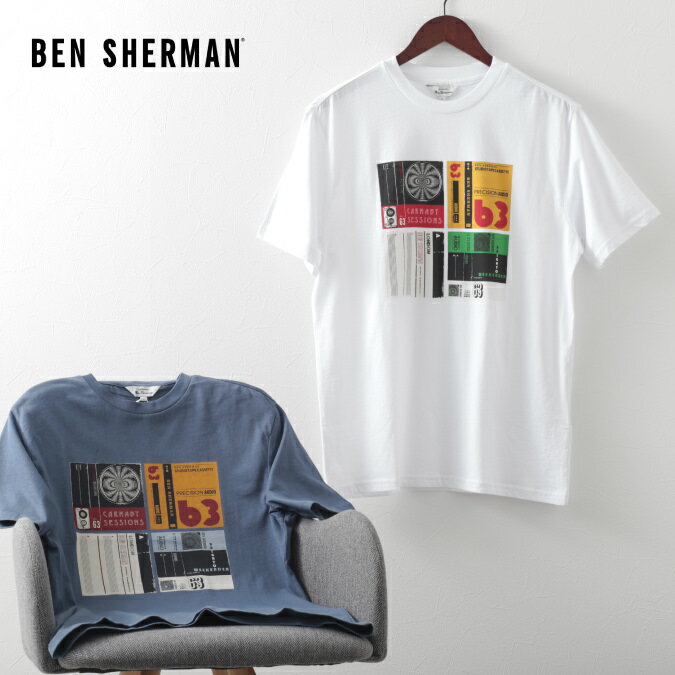 ベンシャーマン メンズ Tシャツ カセット インレイ Ben Sherman 2色 ライトインディゴ ホワイト レギュラーフィット ギフト トラッド