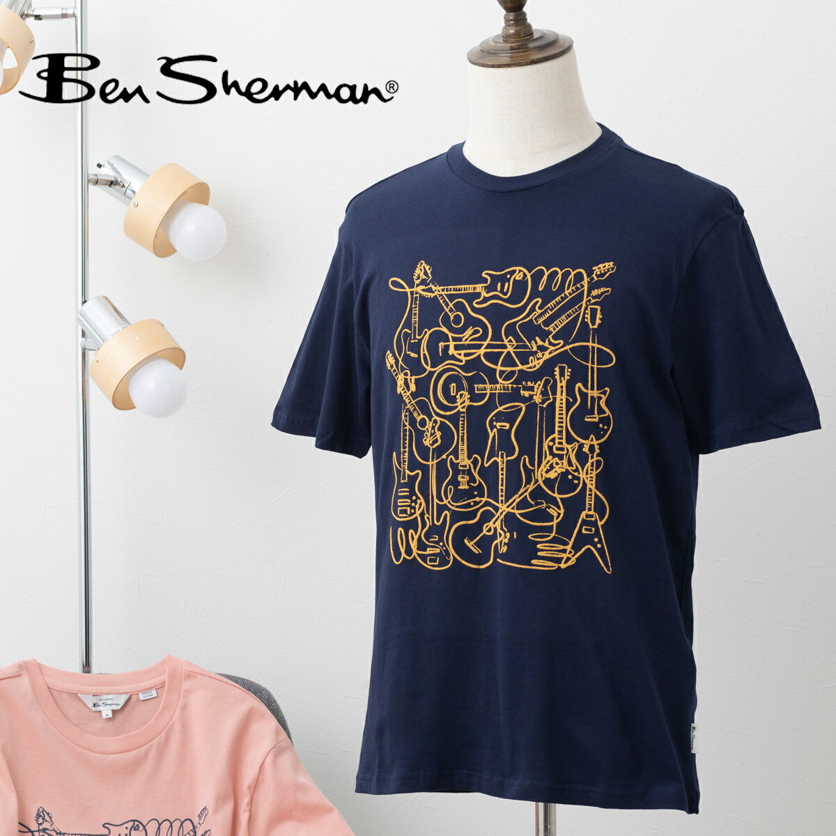 Ben Sherman ベンシャーマン メンズ Tシャツ 半袖 バナナスプリットプリント 2色 マリン ホワイト 楽器 果物 フルーツ オーガニックコットン レギュラーフィット クルーネック イギリス ギフト トラッド