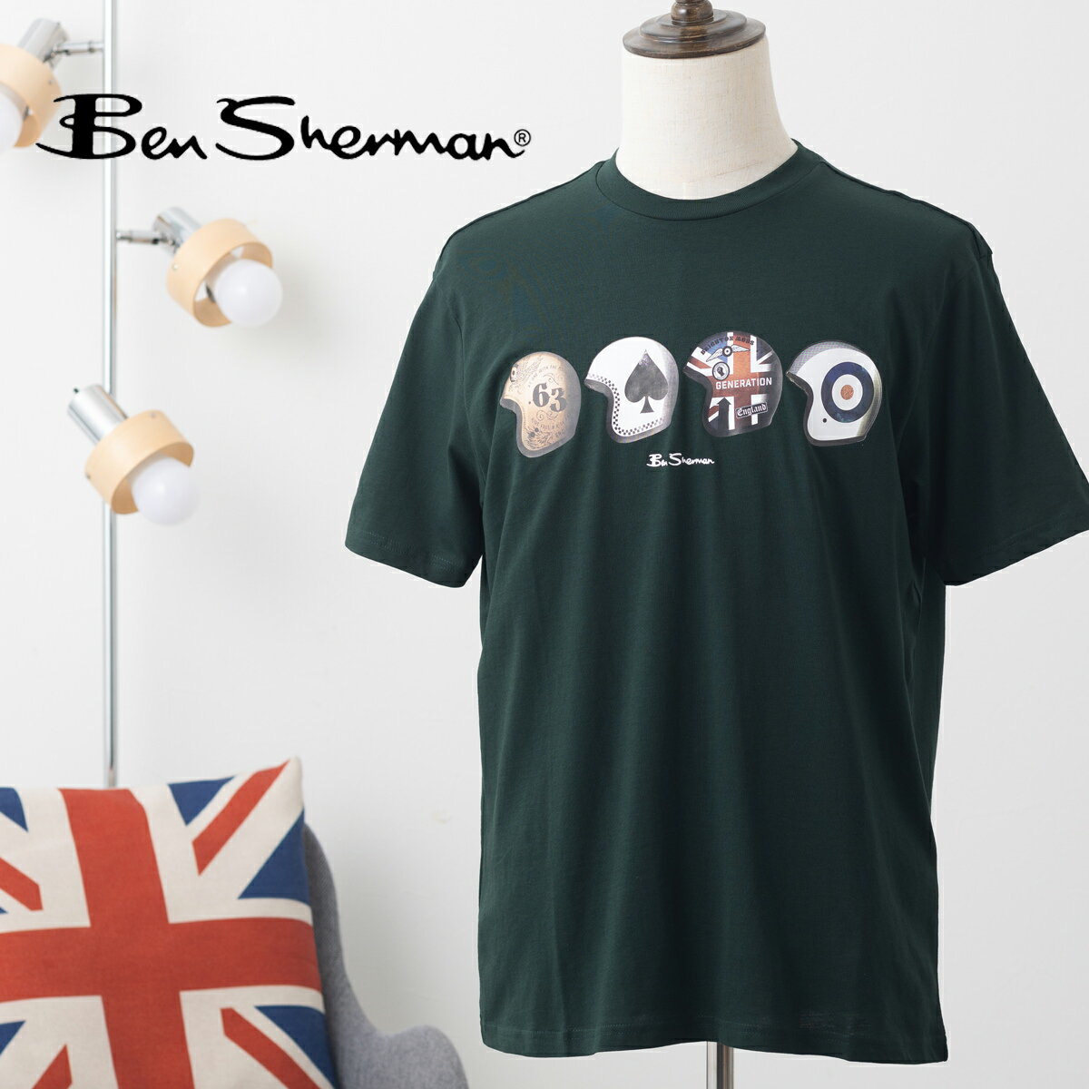 Ben Sherman ベンシャーマン Tシャツ 半袖 ダークグリーン ヘルメット プリント オーガニックコットン レギュラーフィット クルーネック ユニセックス イギリス ギフト トラッド メンズ