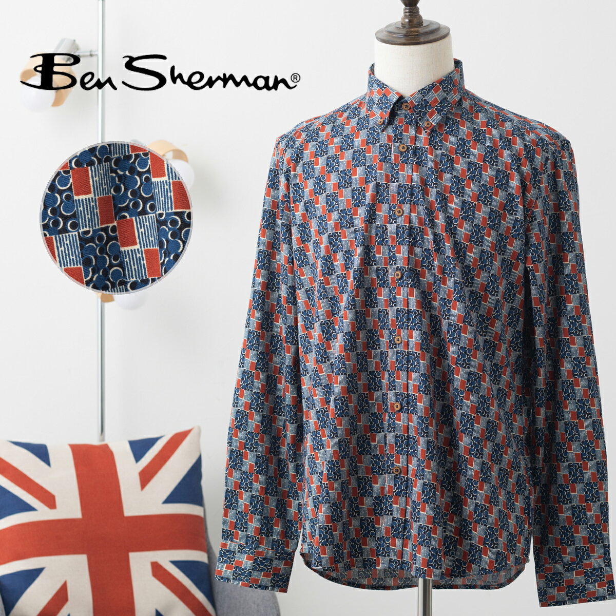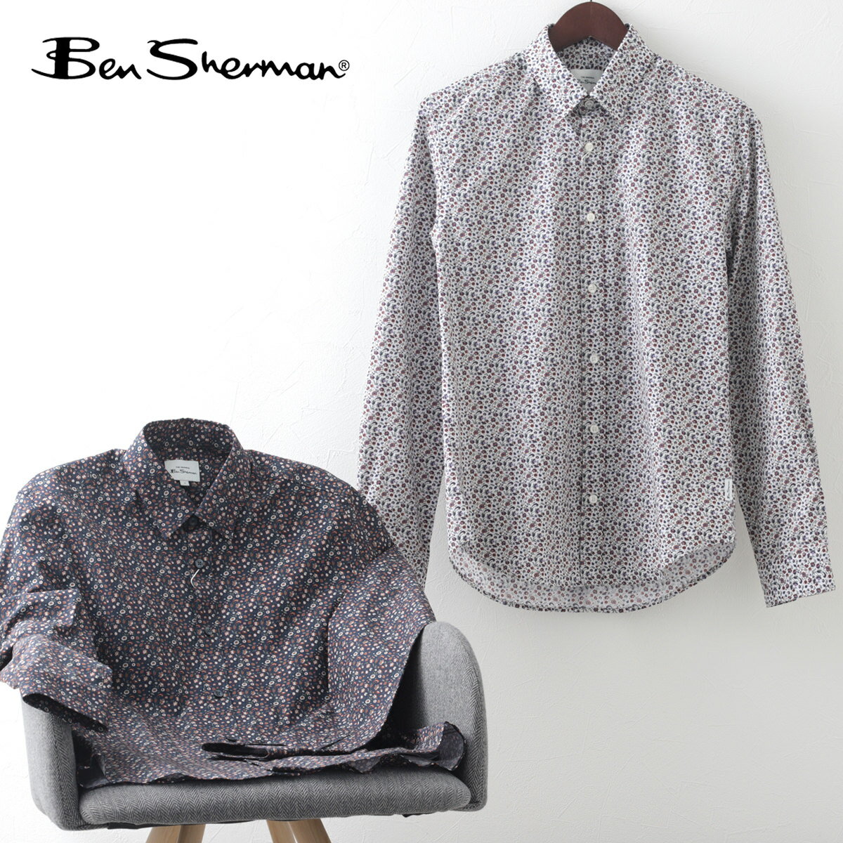 ベンシャーマン メンズ 長袖シャツ マルチカラー フローラル シャツ Ben Sherman 2色 ダークネイビー アイボリー ギフト トラッド