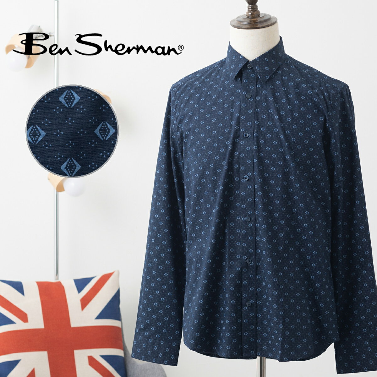 Ben Sherman ベンシャーマン 長袖シャツ ジオプリントシャツ レギュラーフィット ジオメトリック ミッドナイト コットン ギフト モッズ ボタンダウン トラッド メンズ