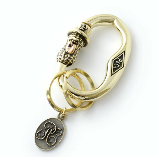 フォトグラファーのYOSHIKI SUZUKIが展開するアクセサリーブランド「ピーナツ&カンパニー」。 ひと目で心を奪うPOPでFUNNYなデザインと、精巧でタフな造りのアクセサリーは一生物の相棒となる。 お馴染みのBERO PEANUTSが配置されたカラビナキーホルダー。 BERO PEANUTSがフックの役割を果たし、倒して着脱が可能。 カラビナの内周がピーナッツのシルエットになっており、さりげなくも拘りを感じるデザイン。 2重カンは2個。そのうちの1つに、PEANUTS COMPANYオリジナル"PC"ロゴチャームが付属。 素材は、ブラス×銅製。 箱が付属致します。※付属の箱は予告なくデザインが変更になる場合がございます。 ■素材 ブラス、銅 ■実寸 縦×横:64mm×横42mm / カラビナ本体の厚み7mm