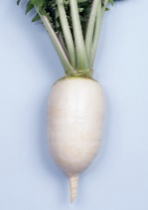 ・根長は36〜38程度、根径7.5程度で尻詰まりの良い円筒形です。 ・首色が淡い緑色で、皮色・肉色とも純白で美しい大根です。 ・肉質が優れ、生食、煮食、浅漬け、いずれにも向きます。 ・”ス入り”が極めて遅く、貯蔵用、囲い用に好適です。 ・萎黄病には耐病性がないので、汚染地では栽培を控えてください。