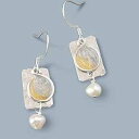 Bettina 手作り軽量 2 トーン シルバー ゴールド樹脂とパール長方形ドロップ レディース イヤリング ビーズ Handmade Lightweight 2 Tone Silver Gold Resin and Pearl Rectangle Drop Womens Earrings Beads by Bettina