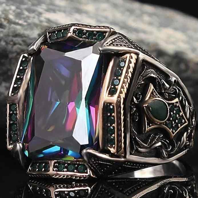指輪 メンズ 合金製 欧米風 レトロ パンク ゴシック風 個性派 存在感 ライオンモチーフ 幾何学模様 カラーストーン 電気メッキ加工 普段使い カジュアルスタイル 春夏