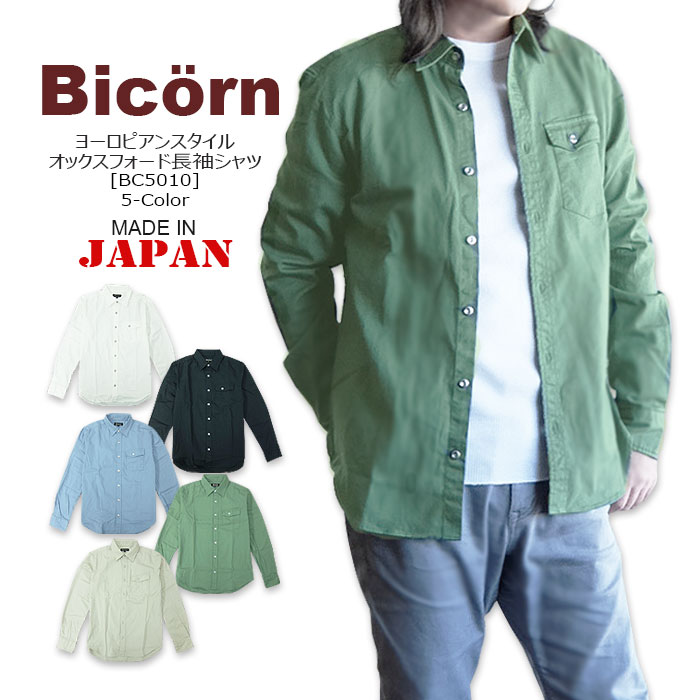Bicorn(バイコーン) ヨーロピアンスタイル オックスフォード 長袖シャツ[BC5010] European Style Oxford L/S Shirts シャツ 長袖シャツ メンズ アメカジ日本製 【¥9,350】【RCP】ホワイト ブラック ブルー グリーン ベージュ