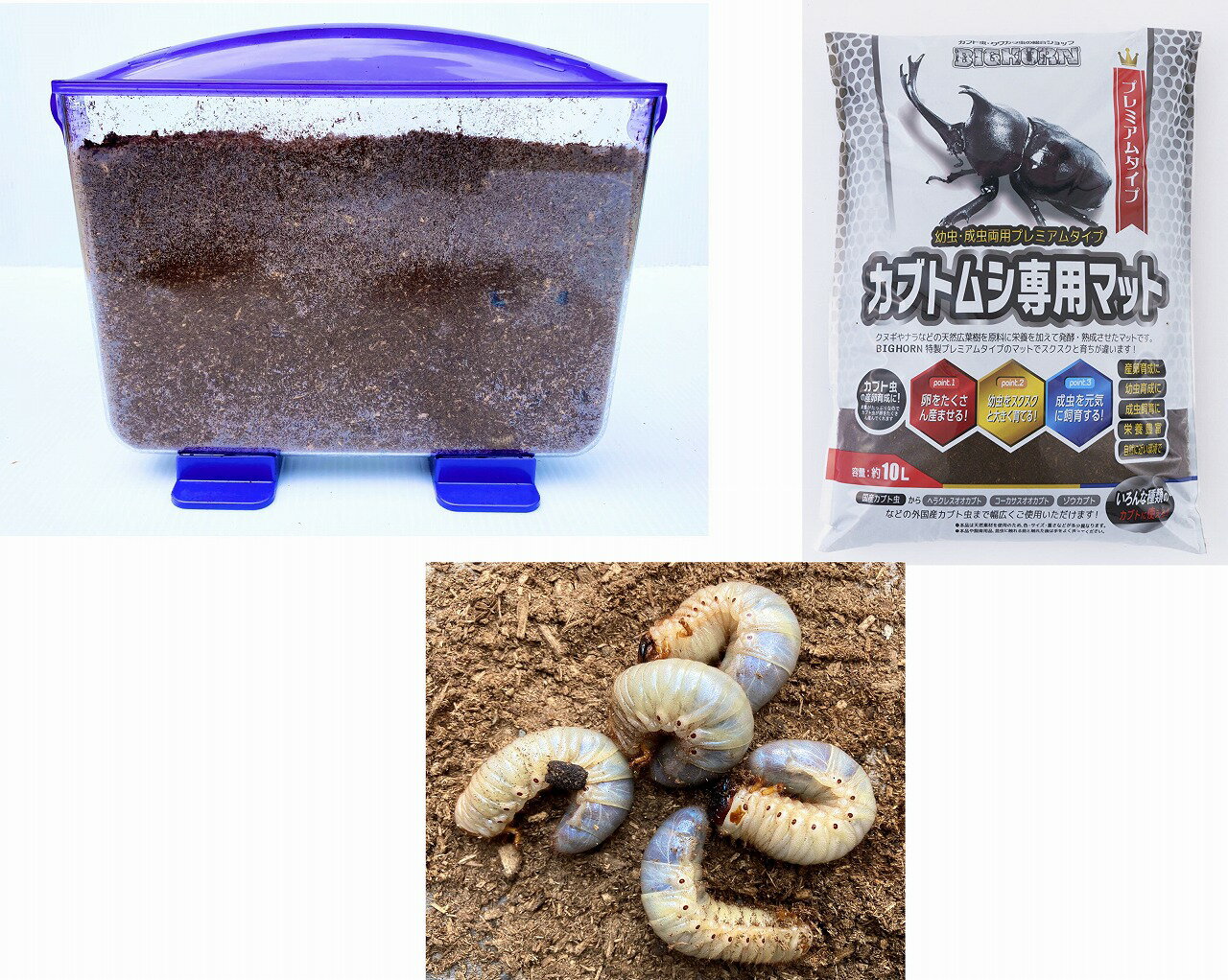BIGHORN 国産かぶとむし3令幼虫5頭 観察セット ラクぼっくす・カブト専用マット10L1袋付 自由研究に