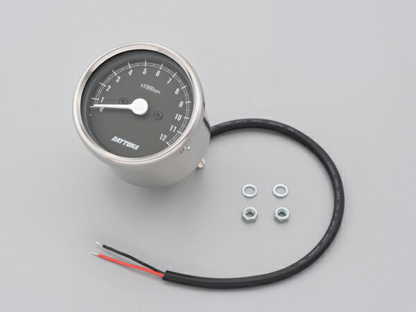 【15日限定!クーポン配布!】 デイトナ DAYTONA バイク用 ミニメーター 機械式タコメーター φ60 ホワイトLED照明 ステンレスボディ/ブラックパネル 12000rpm 15641