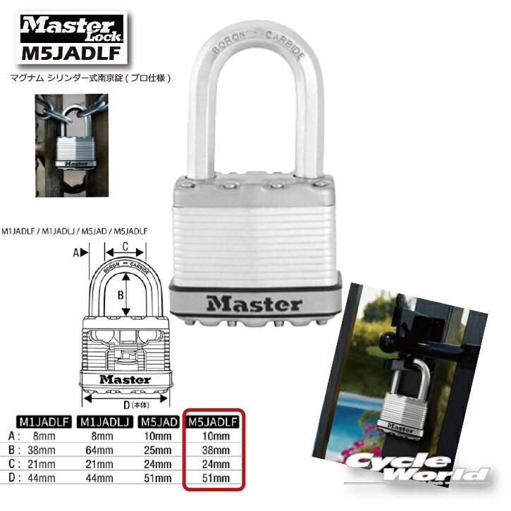 ☆【ネコポス対応】【MasterLock】《M1JADLF》 マグナム シリンダー式南京錠(プロ仕様)マスターロック アメリカNo.1ブランド バイクロック 鍵 盗難防止 セキュリティ 【バイク用品】