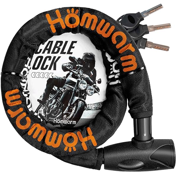 Homwarm バイクロック チェーンロック バイク 自転車 ワイヤーロック φ(直径)22mm×1200mm 頑丈 盗難防止 鍵3本セット (ブラック)