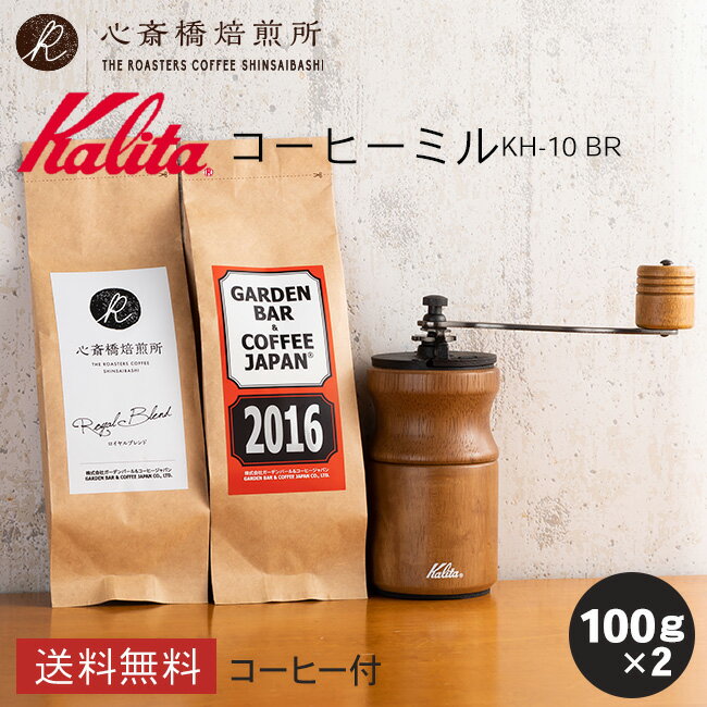 【 Kalita 】 カリタ コーヒーミル バラエティセット KH-10 BR(ブラウン)手挽き プレゼント付! | 2016 心斎橋ロイヤル(ROYAL BLEND) 各100g | コーヒー豆 深煎り 中深煎り ブレンド コロンビア COFFEE 心斎橋焙煎所