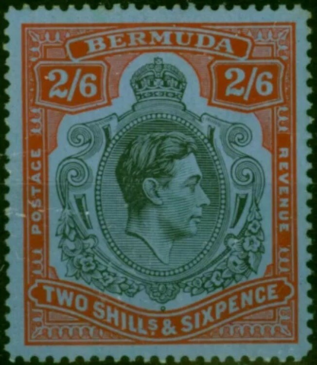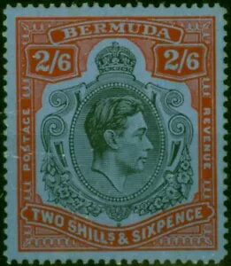バミューダ 1942 2s6d ブラック&レッドグレーブルー SG117a ラインパーフォレーション 14.25 良好 MM