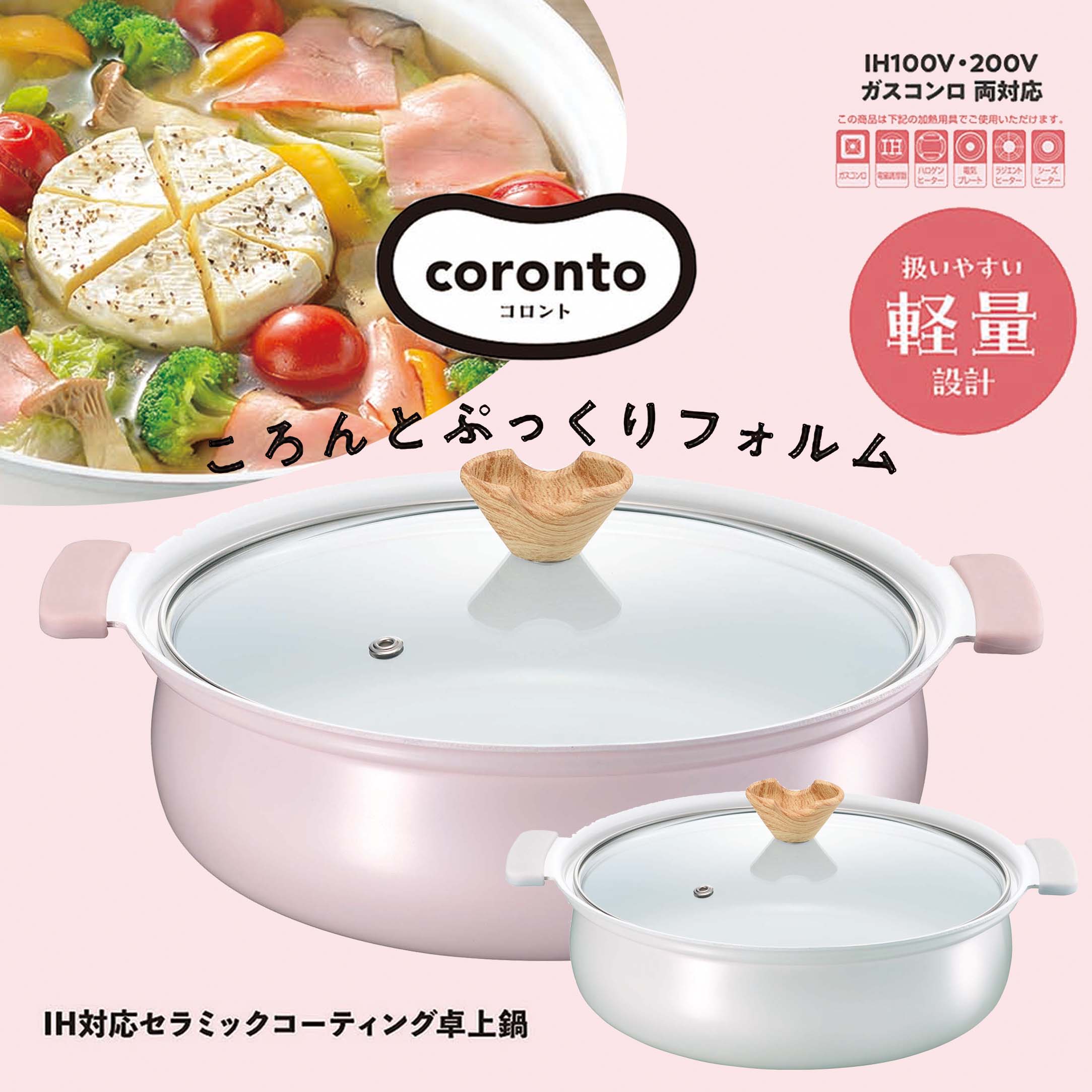 [BLACK FRIDAY開催!11/20 20:00~ ポイントアップ&お得なクーポンも] 鍋 卓上鍋 18cm 24cm 28cm セラミックコーティング 軽量 軽い コロント coronto IH対応 おすすめ