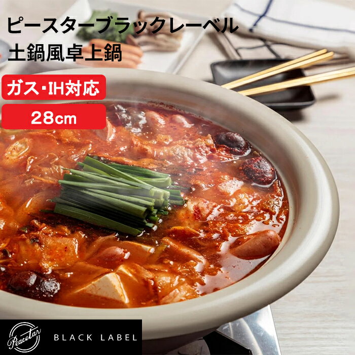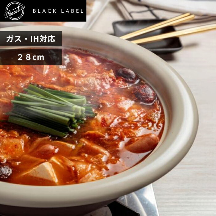 Peacetar Black Label 土鍋風卓上鍋 28cm ウォームベージュ 28センチ PBL-DM28 一人暮らし 新生活 ピースター 万能鍋 アルミ合金 アルミ鋳物 セラミックコーティング 深型 料理 IH対応 ガスコンロ 調理器具 時短 簡単 便利 グレー ブラック プレゼント