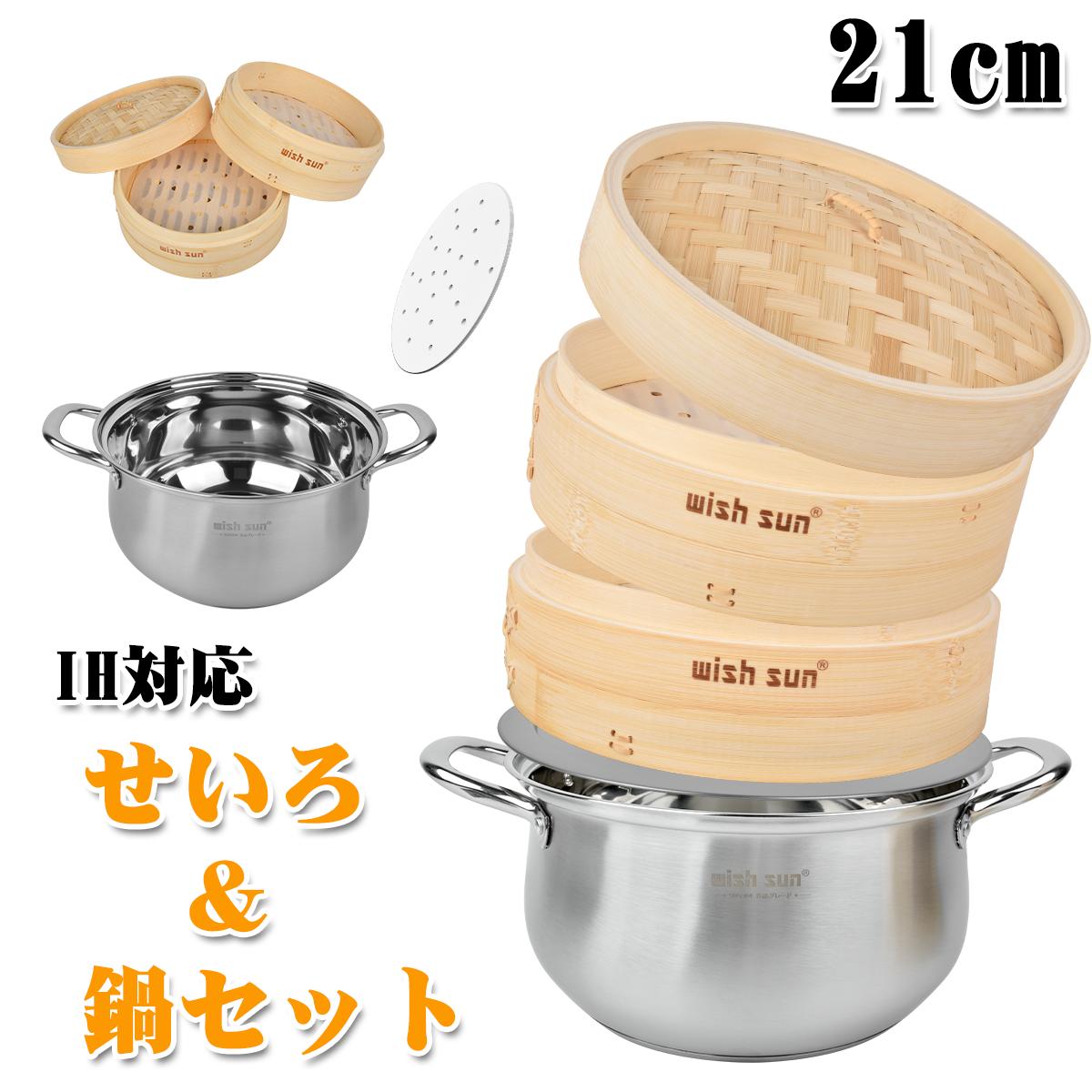 【BLACK FRIDAY最大1000円OFF!】【セイロ専用用紙50枚付】せいろ用ステンレス鍋 セイロ鍋セット 21cm セイロ鍋つき 蒸篭 蒸し器 蒸し鍋 ガス火 直火 IH対応 せいろ用鍋 なべ 卓上鍋 1人サイズ 鍋セット 深型 蒸し板セイロ 天然竹 せいろ 中華せいろ 本竹せいろ2段