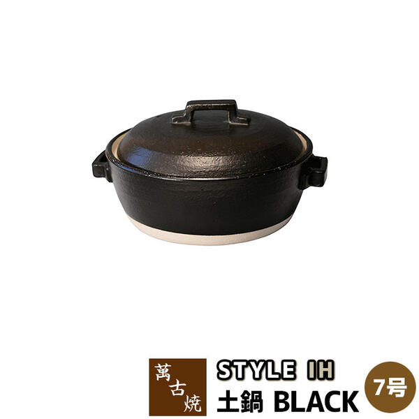 【取寄品】 萬古焼 STYLE 土鍋 BLACK IH <7号サイズ>7号鍋 IH対応 ブラック 黒い 卓上鍋 食卓鍋 スタイリッシュ おしゃれ お鍋料理 シンプル 電子レンジ対応 オーブン対応 ガス直火 ギフト お祝い プレゼント 耐熱陶器 万古焼 日本製