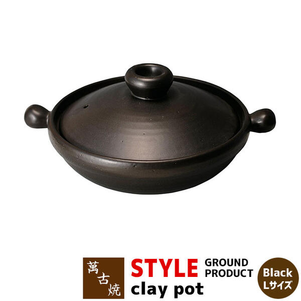 【取寄品】 萬古焼 STYLE GROUND PRODUCT clay pot Black <Lサイズ>土鍋 卓上鍋 食卓鍋 お鍋 スタイリッシュ おしゃれ 黒い シンプル ガス直火 電子レンジ対応 オーブン対応 ギフト プレゼント お祝い 耐熱陶器 日本製