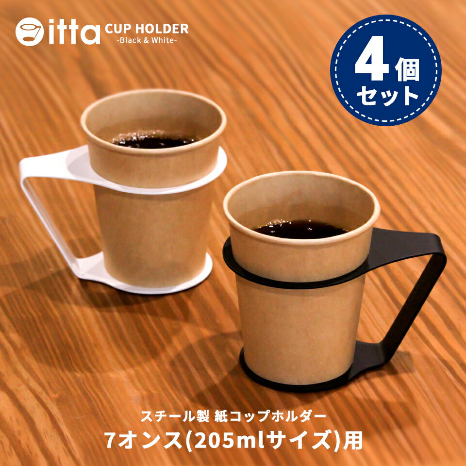スチール製 紙コップホルダー Black & White おしゃれ 7オンス【itta 4個セット】コップホルダー カップホルダー ドリンクホルダー 紙コップ 使い捨てカップ プレゼント ギフト 業務用 贈答品におすすめ
