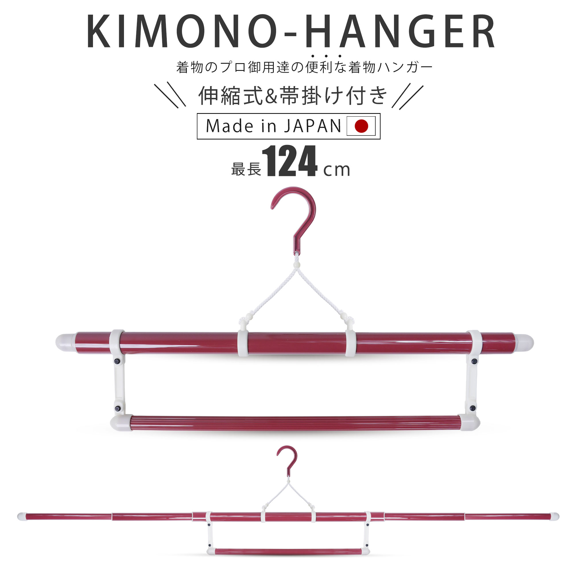 商品詳細 帯掛け付きの伸縮タイプの着物ハンガーです。 ワイド設計ですので、124cmまで伸び大きなサイズの着物も掛けられ、 型崩れやシワを防ぎます。 伸縮タイプですので、使わない時はコンパクトになり、収納時にかさばりません。 便利な帯掛けが付いておりますので、着物と帯が一緒にかけられます。 スペック ・着物掛け部:約124cm ・帯掛け部:約35.5cm ・最小収納時:約49.5cm ・材質:ポリカーボネート樹脂 ・製 造:日本製