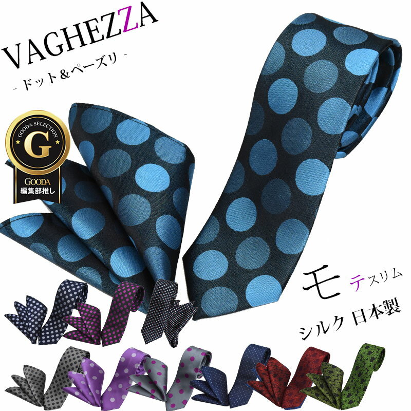 【BLACK FRIDAY クーポンあり】ネクタイ ポケットチーフ ナロータイ 細身 セット日本製 シルク100% ネクタイ おしゃれ ドット ペイズリー 紺 グレー 赤 黒 ギフト プレゼント 結婚式 披露宴 お祝い 誕生日