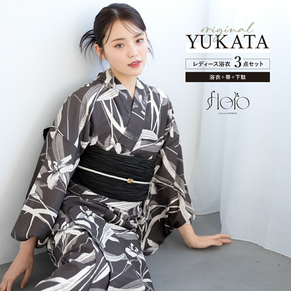 Black Friday☆最大1000円クーポン配布中☆浴衣 セット レディース 浴衣セット 3点セット 夏 兵児帯 2025 floro 簡単 涼しい 女性 黒 焦茶 桔梗 花柄 おしゃれ 可愛い 下駄 S フリー 創美苑 送料無料
