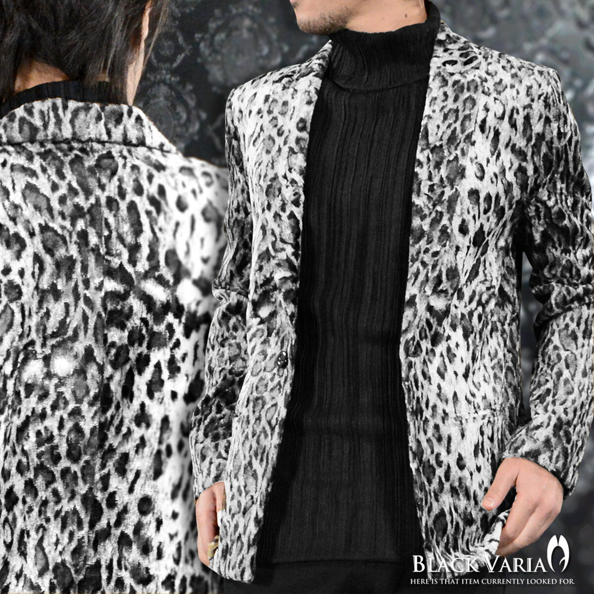BLACK VARIA ブラックバリア blackvaria カットジャケット 豹柄 ヒョウ アニマル ファー メンズ テーラード 1釦 ジャケット mens ファッション おしゃれ (ホワイト白ブラック黒) 162955