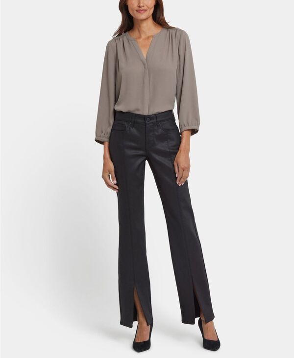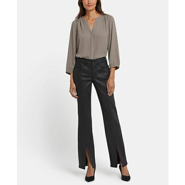 (取寄) エヌワイディージェイ レディース コーテッド マリリン フロント スリット ストレート ジーンズ イン ブラック コーテッド NYDJ women Coated Marilyn Front Slit Straight Jeans in Black Coated Black Coated
