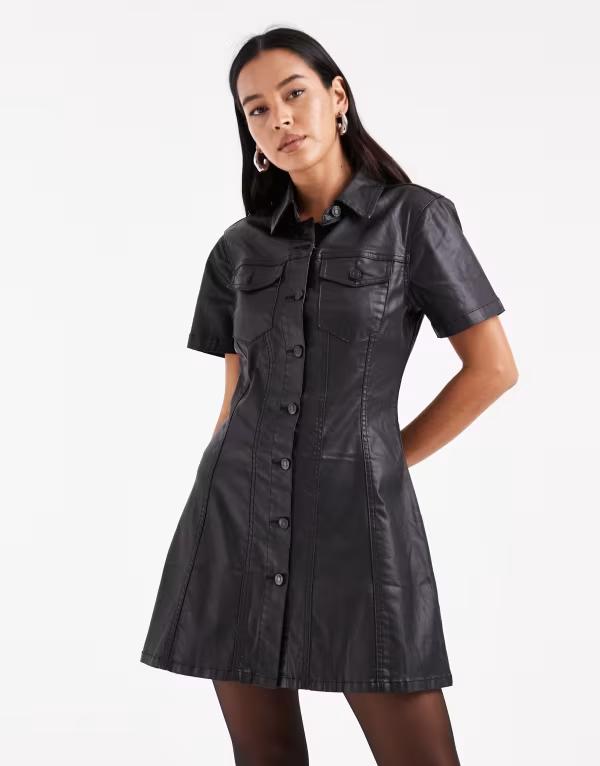 エイソス レディース トップス ワンピース シャツワンピース シャツ コート デニム ASOS DESIGN short sleeve denim shirt dress in coated Black coated ブラック
