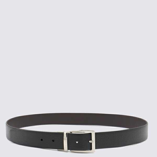フェラガモ メンズ ベルト アクセサリー Black Leather Belt NERO/HICKORY
