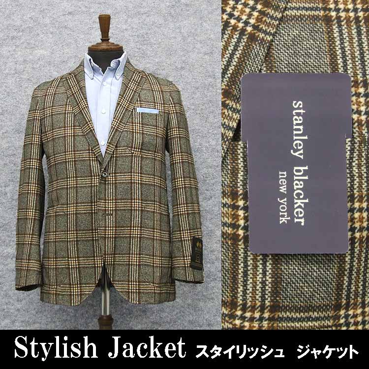 秋冬物 [STANLEY BLACKER] 2釦シングルジャケット スタイリッシュ 茶系/チェック プリント SBK3607-58