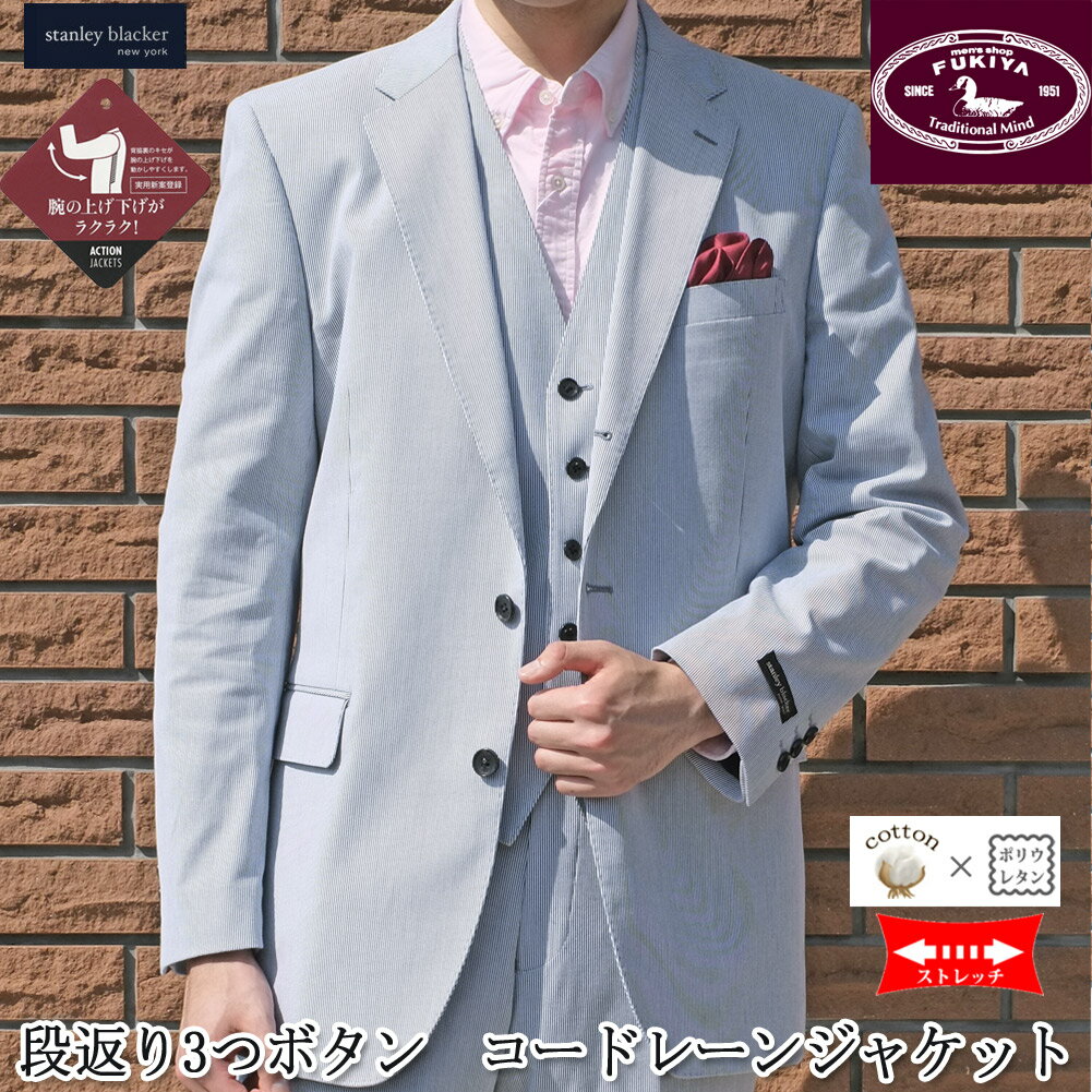 ジャケット メンズ 春夏 コードレーン 3つボタン スタンリーブラッカー(stanley blacker) 段返り三つボタン サックスブルー 6385 A6 A8 AB7