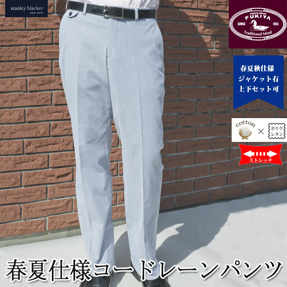 スタンリーブラッカー(stanley blacker) パンツ メンズ 春夏 ノータック スラックス コードレーン サックスブルー 6385 78cm 80cm 82cm 84cm 86cm 88cm 92cm 94cm