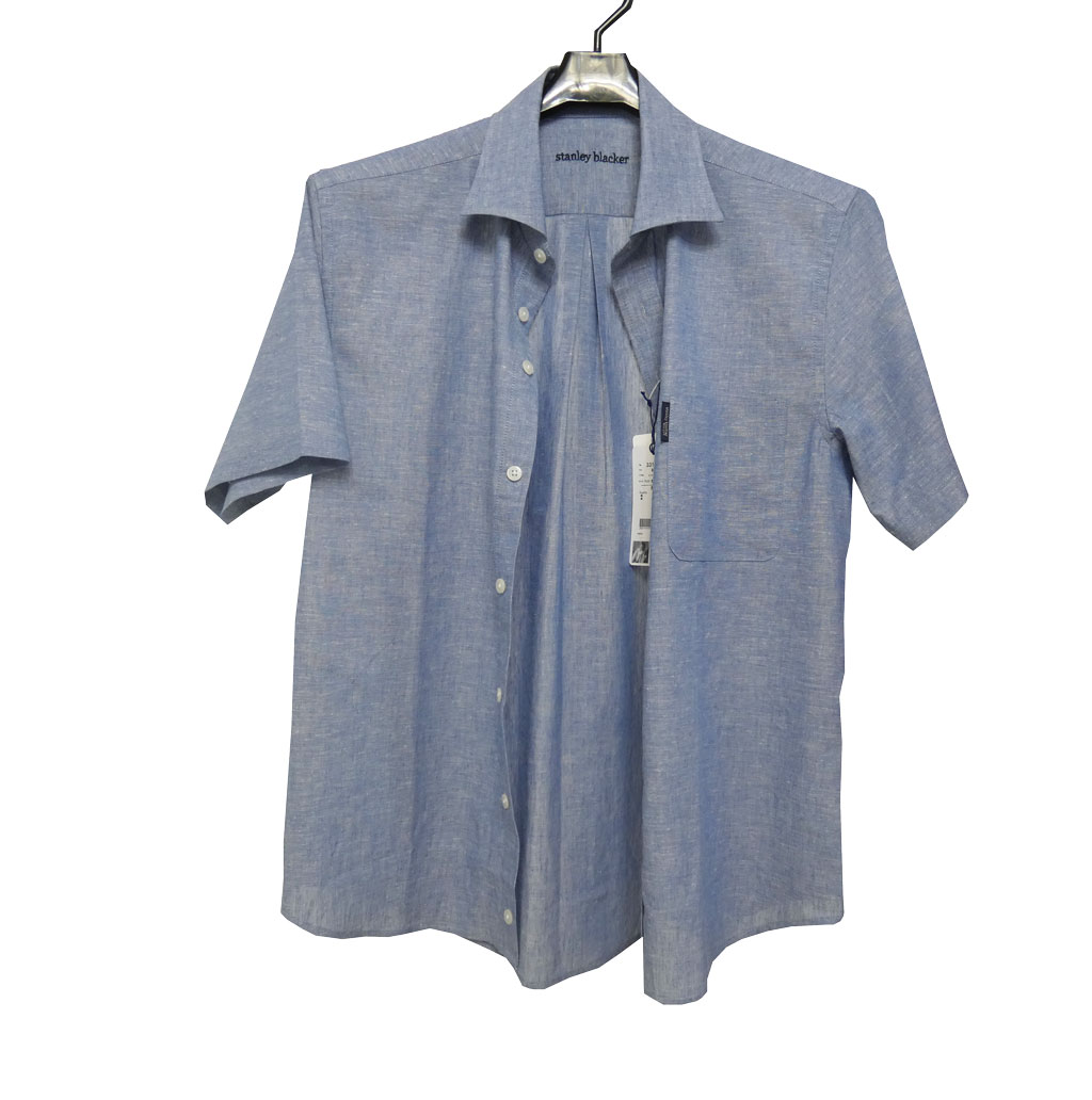 スタンリーブラッカー(stanley blacker) ワイドカラー 半袖シャツ メンズ 春夏 綿麻 ブルー系 0585 Mサイズ