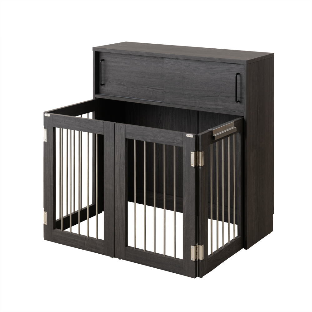 【Blacker】 収納付き折りたたみ型ケージ カウンター下収納 幅90 奥行32.5 高さ87.5 cm ブラック 背面化粧仕上げ ペットケージ ペットゲージ ペットサークル 省スペース 小型犬 中型犬 室内サークル 折りたたみ 犬 ルームゲージ