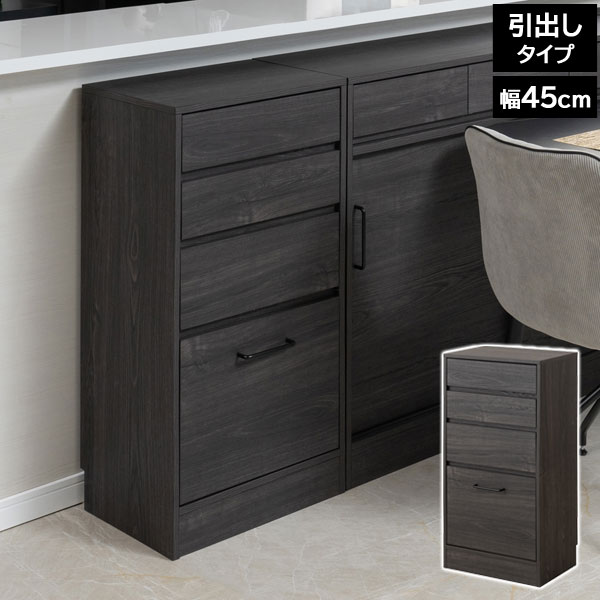 スリムチェスト カウンター下収納 幅45cm 引出し Blacker ブラック木目 FY-0175-NS