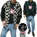 チェック ボア フェイクレザー ブルゾン ジャケット ヴィジョン VISION STREET WEAR チェッカー/ブラックウォッチ メンズ/レディース 長袖 オーバーサイズ ブラック/グリーン サイズM サイズL サイズXL