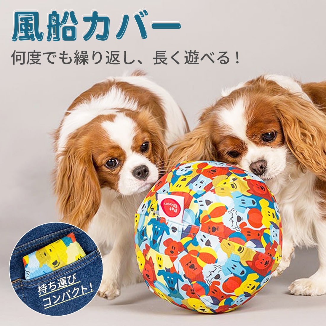 いつでもどこでも何度でも遊べるおもちゃ! カラフルなウォータープルーフの風船カバーは、ペットの遊びを更に楽しくします。 室内でも家具などを傷つけたりケガのリスクが低く、室外でも思いきり遊べます。 カバーを使うことで風船が割れにくく、割れてしまっても誤飲の心配がなく安心。 <材質> 風船カバー: ポリエステル、風船: 天然ゴム <原産国> 中国 <サイズ> Φ25(膨らましサイズ) 【重量】34g <お手入れ方法> ●固く絞った柔らかい布で拭くか、水洗いし、よく乾かしてからご使用ください。 <ご使用上の注意点> ●本製品はペット(犬)用の玩具です。本来の用途以外には使用しないでください。 ●必ず飼い主の目が届く範囲で使用し、風船が割れたらすぐに交換してください。 ●火気や障害物の近くで使用しないでください。 ●破損・変形した製品は使用しないでください。 ●万一、ペットが破片を飲み込んだ時はすぐに獣医師にご相談ください。 ●ペットやお子さまの手の届かない場所に保管してください。 ●遊び方によっては短時間で壊れてしまう場合があります。