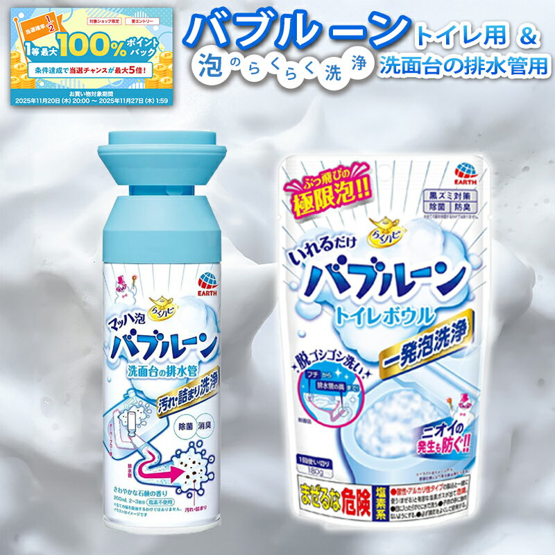 【ブラックフライデー限定★抽選50%で最大100%バック】マッハ泡バブルーン + いれるだけバブルーン トイレボウル 2種セット らくハピ 排水口 洗面台 トイレ 泡洗浄 消臭 除菌 掃除用洗剤