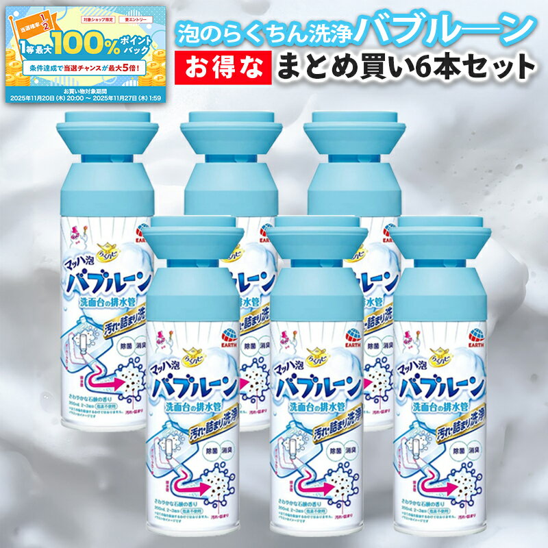 【ブラックフライデー限定★抽選50%で最大100%バック】マッハ泡 バブルーン 6本セット 洗面台 排水口クリーナー らくハピ 泡洗浄 消臭 除菌 詰め替え不要 まとめ買い 大容量