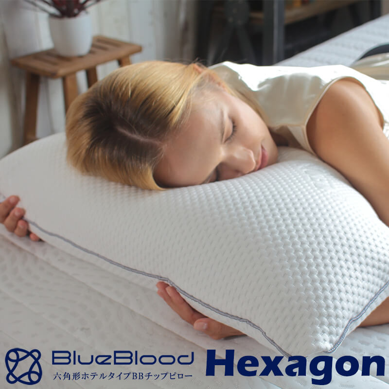 BlueBlood ホテルタイプチップピロー Hexagon : ヘキサゴンブルーブラッドを砕いてふわふわの感触をプラス! 六角形のホテルタイプピロー 枕 ホテル 柔らかめ いびき うつ伏せ 横向き 六角形 誕生日 母の日 父の日 ギフト プレゼント 実用的