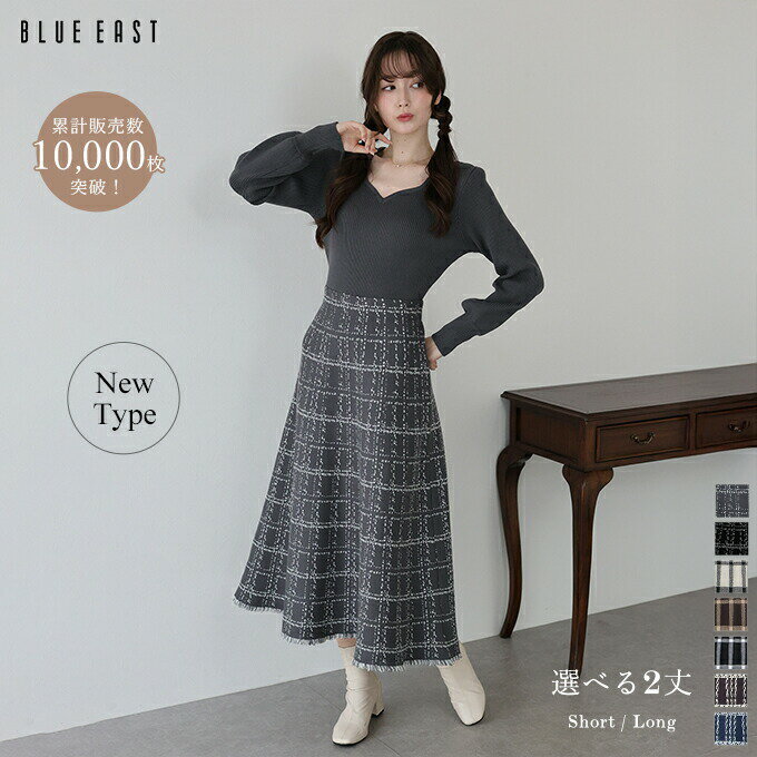 【11/27 10:59まで!タイムセール/10%OFF中】【送料無料】【累計販売数10000枚突破!】【新タイプ追加】ニットワンピース レディース ワンピース ロングワンピース フレアー 秋 冬 選べる2丈 リブ チェック柄 千鳥格子 ハイネック ロング 長袖 ボリューム袖 パフ袖 BLUEEAST