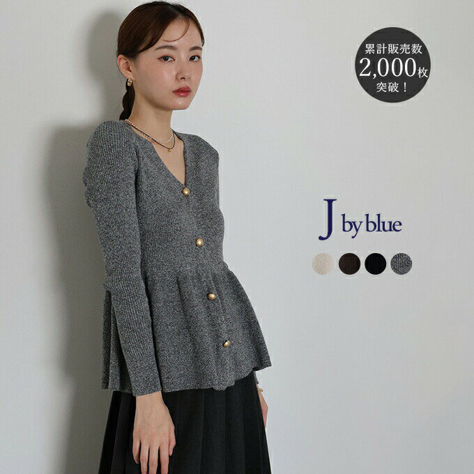【11/27 10:59まで!タイムセール/10%OFF中】【累計販売数2000枚突破!】【送料無料】【新色追加】[J by blue] ゴールドボタンペプラムカーディガン カーディガン レディース ニット トップス 羽織り 秋 冬 Vネック カジュアル オフィス 通勤 かわいい おしゃれ BLUEEAST